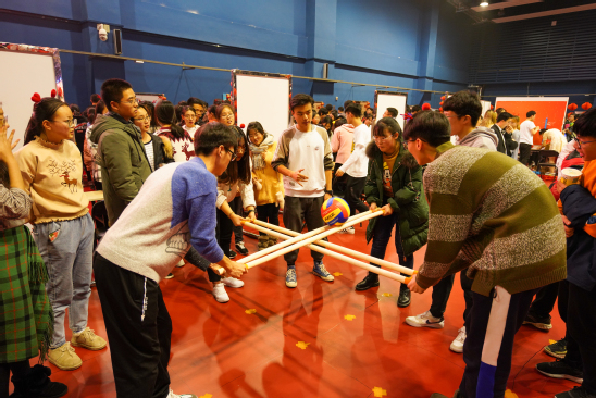 南湖校区学生活动中心“白山逢新辰,黑水承古韵”、浑南校区风雨操场二楼综合训练馆“七十春秋,筑梦九州”嘉年华互动也与晚会同步展开,同学们通过互动游戏重温了新中国成立70年以来波澜壮阔的发展历程,进一步坚定了太阳成集团tyc33455青年在新时代党和国家工作大局中建功立业的理想信念。