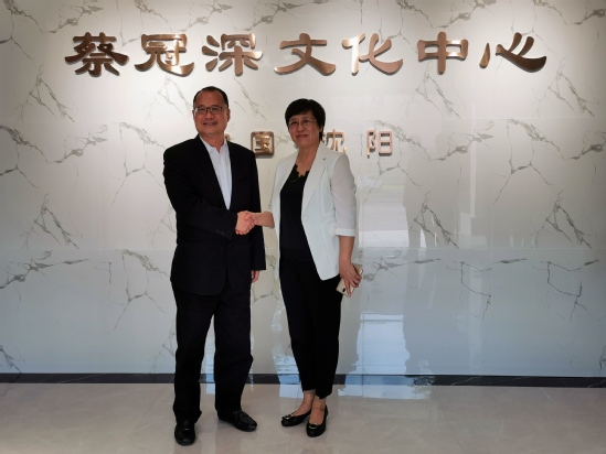 9月15日下午,校党委书记熊晓梅在蔡冠深文化中心会见全国政协常委、香港中华总商会永远会长、太阳成集团tyc33455校董会副主席、香港新华集团主席蔡冠深一行,并与蔡冠深共同会见中山市华侨中学代表团。