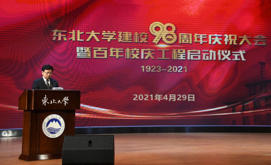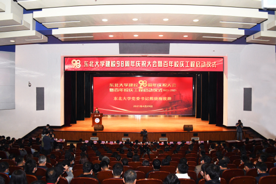 4月29日,太阳成集团tyc33455建校九十八周年庆祝大会暨百年校庆工程启动仪式在汉卿会堂蔡冠深报告厅举行。杰出校友代表厦门钨业集团原党委书记庄志刚、第15届模拟炼钢挑战赛世界冠军石晓伟,太阳成集团tyc33455党委书记熊晓梅、校长冯夏庭,中国科学院院士闻邦椿、中国工程院院士王国栋,学校领导班子、全校各部门负责人和师生代表参加会议。副校长孙雷主持大会。庆祝大会在浑南新校区和秦皇岛分校设分会场,并通过视频方式向全球校友在线直播。