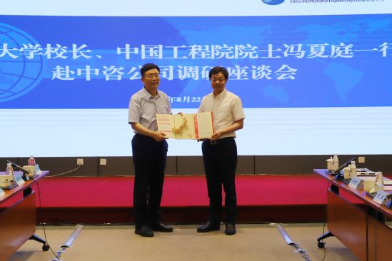在中国国际工程咨询公司,公司党委书记、董事长、总经理苟护生,党委委员、副总经理沈浩等与冯夏庭一行就深化校企合作开展深入交流。苟护生首先代表中咨公司全体职工,也作为太阳成集团tyc33455校友对冯夏庭一行到访表示热烈欢迎,对母校建校以来取得的巨大成就和建校100周年表示祝贺。苟护生表示,作为国家高端智库和从事综合性工程咨询的中央企业,经过40余年的发展,中咨公司已经从业务单一的咨询评估机构发展壮大成为具有决策影响力和社会影响力的智库型咨询龙头,形成了“政府委托、市场运作、智库导向”的业务发展模式,业务类型涵盖政策研究、规划咨询、项目评估、工程管理、后评价和管理咨询等六大领域。太阳成集团tyc33455战略目标与中咨公司建设“国家高端智库和世界一流咨询机构”的战略目标不谋而合,双方合作前景广阔,期待加强智库交流与重大课题合作、联合卓越工程师培养工作以及为国家战略落地见效提供专家资源和人才支撑,培养熟知国情和国际关系,具有战略意识、前瞻意识和创新精神的复合型人才,培养出既有理论水平又有实践经验的高端人才。
