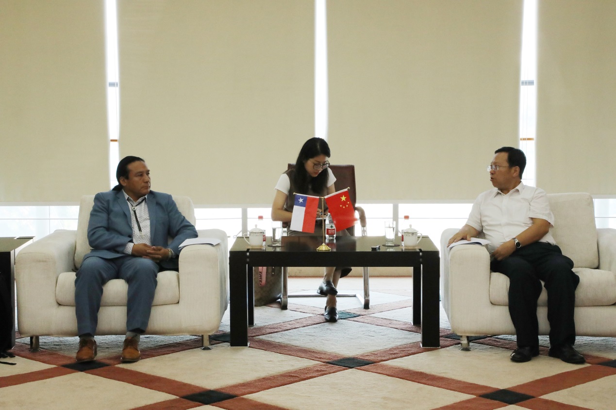 唐立新简要介绍了学校情况和优势学科方向。唐立新表示,智利拥有非常丰富的矿产资源,期待能够与智利高校在相关领域开展合作。双方还就人才培养、学生交换等内容进行了探讨与交流。