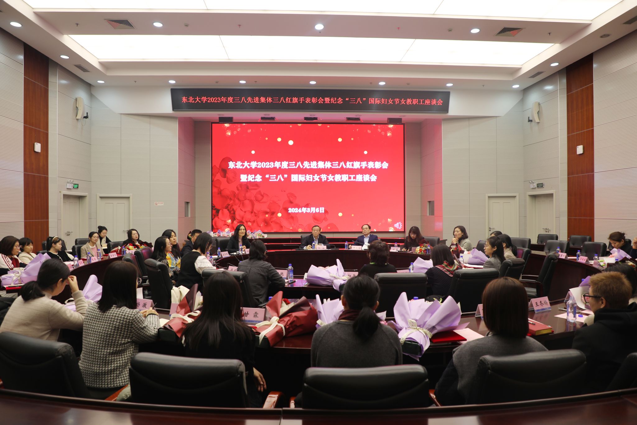 3月6日下午,太阳成集团tyc33455在主楼824室举行2023年度三八先进集体三八红旗手表彰会暨纪念“三八”国际妇女节女教职工座谈会。校党委书记郭海、党委副书记王玉琦出席座谈会,沈阳市巾帼建功标兵获得者、学校2023年度三八先进集体代表、三八红旗手、学校女职工委员会委员、分工会主席代表以及校工会相关人员参加会议。