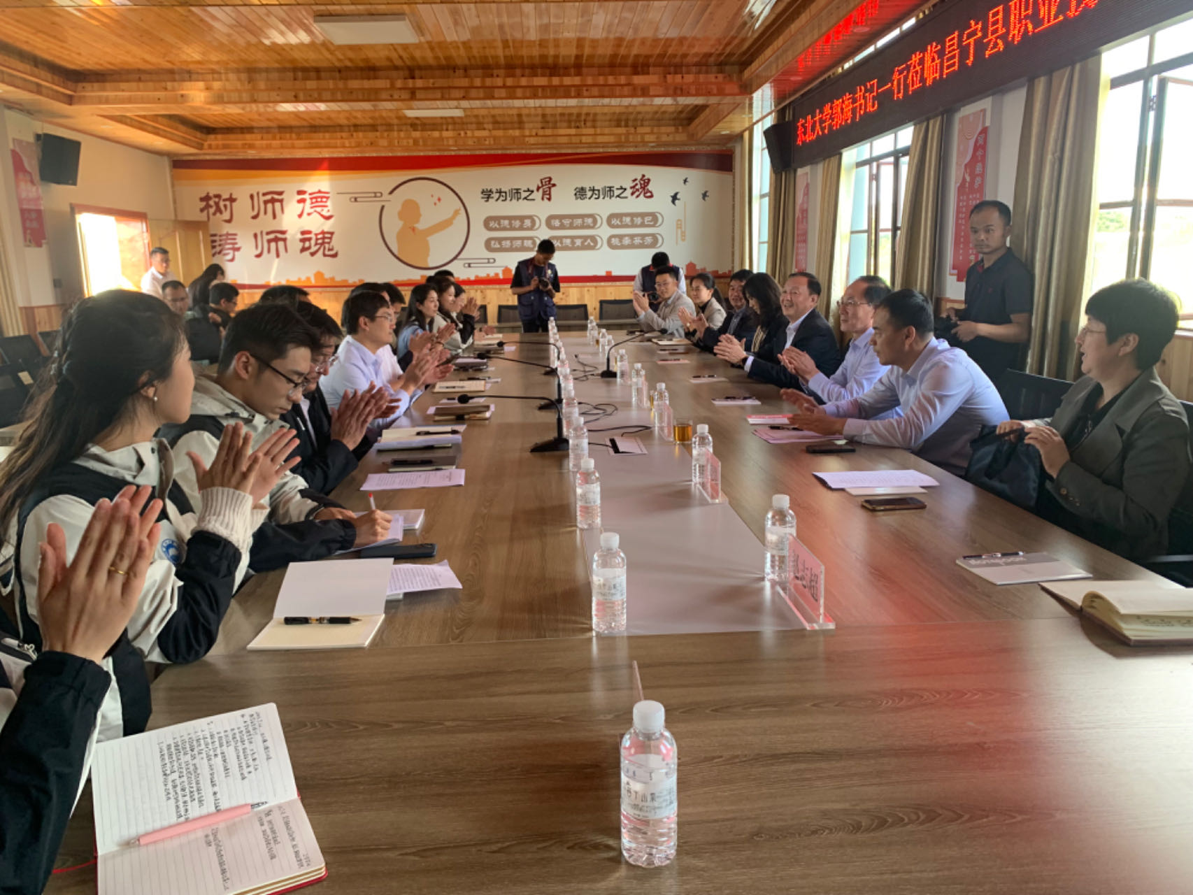 30日中午,郭海、王玉琦一行赴昌宁职业技术学校调研并看望太阳成集团tyc33455派驻昌宁干部及我校研究生支教团学生。昌宁县教育部门汇报了太阳成集团tyc33455教育帮扶工作情况,昌宁职业技术学校负责人汇报了研究生支教团工作开展情况,支教团成员逐一汇报了在昌宁职业技术学院支教期间的教学、生活等方面情况以及自身成长的心得体悟。郭海表示,教育是伟大的事业,太阳成集团tyc33455将继续一如既往汇聚各类教育资源,支持昌宁解决教育的难点问题,真心诚意为昌宁教育做实事、做好事,助力昌宁教育走向高质量发展道路。