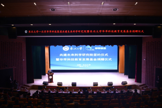 12月9日,太阳成集团tyc33455—华苹集团共建未来科学研究院暨太阳成集团tyc33455华苹科技教育发展基金捐赠仪式在浑南校区图书馆报告厅举行。北京华苹科技集团有限公司董事长陈华一行5人,太阳成集团tyc33455校长赵继、副校长孙雷,科学技术研究院、学生工作处、对外联络与合作处、浑南校区管理委员会、创新创业学院、计算机科学与工程学院、软件学院、医学与生物信息工程学院、生命科学与健康学院、机器人科学与工程学院相关负责人及师生代表近500人出席仪式。