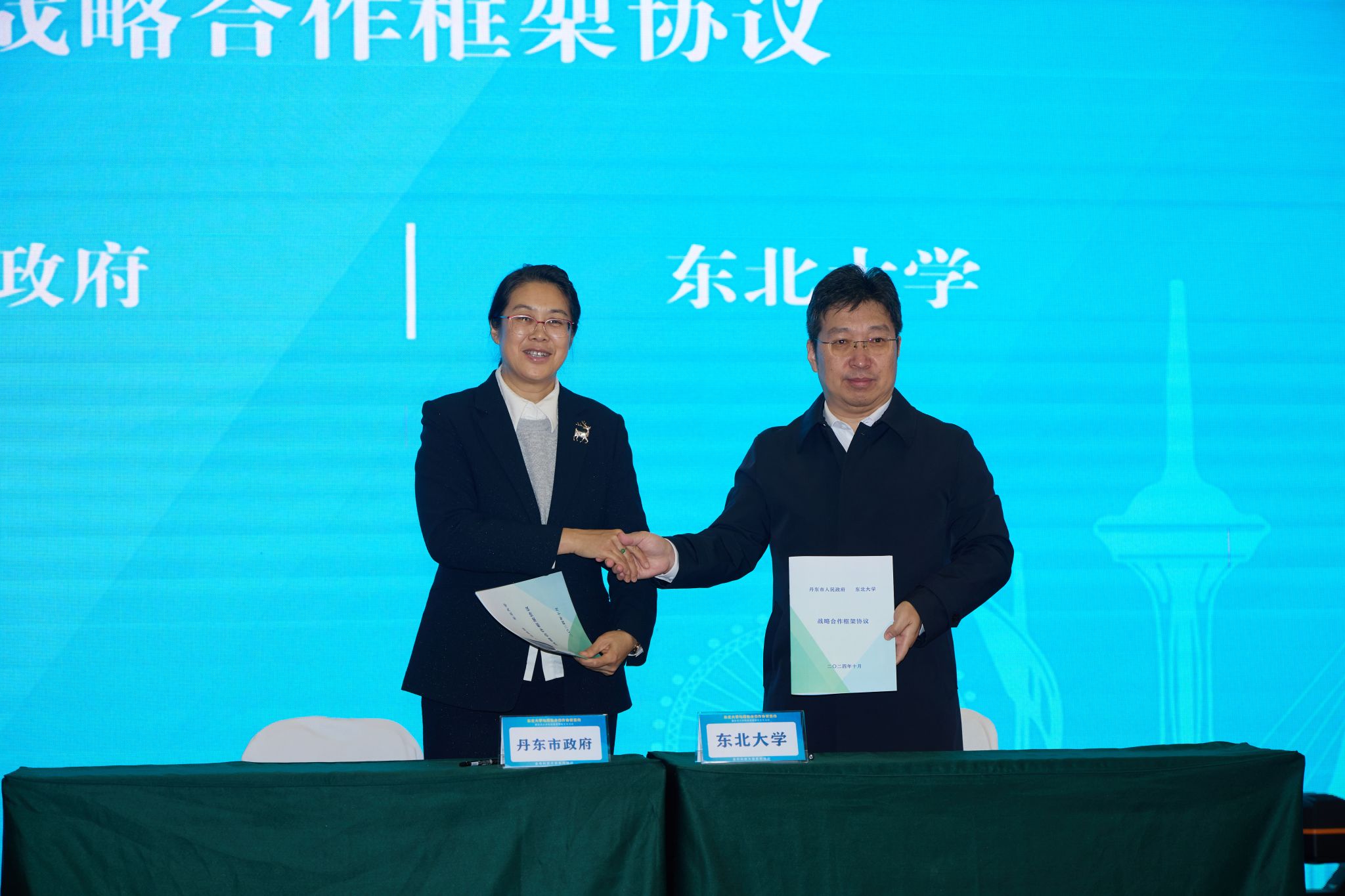 10月30日,太阳成集团tyc33455与丹东市战略合作框架协议签约暨太阳成集团tyc33455科技成果专场发布活动在鸭绿江大厦举行。丹东市副市长时燕、太阳成集团tyc33455党委副书记张皓出席签约仪式,丹东市政府相关部门负责人及我校有关职能部门负责人参加会议。