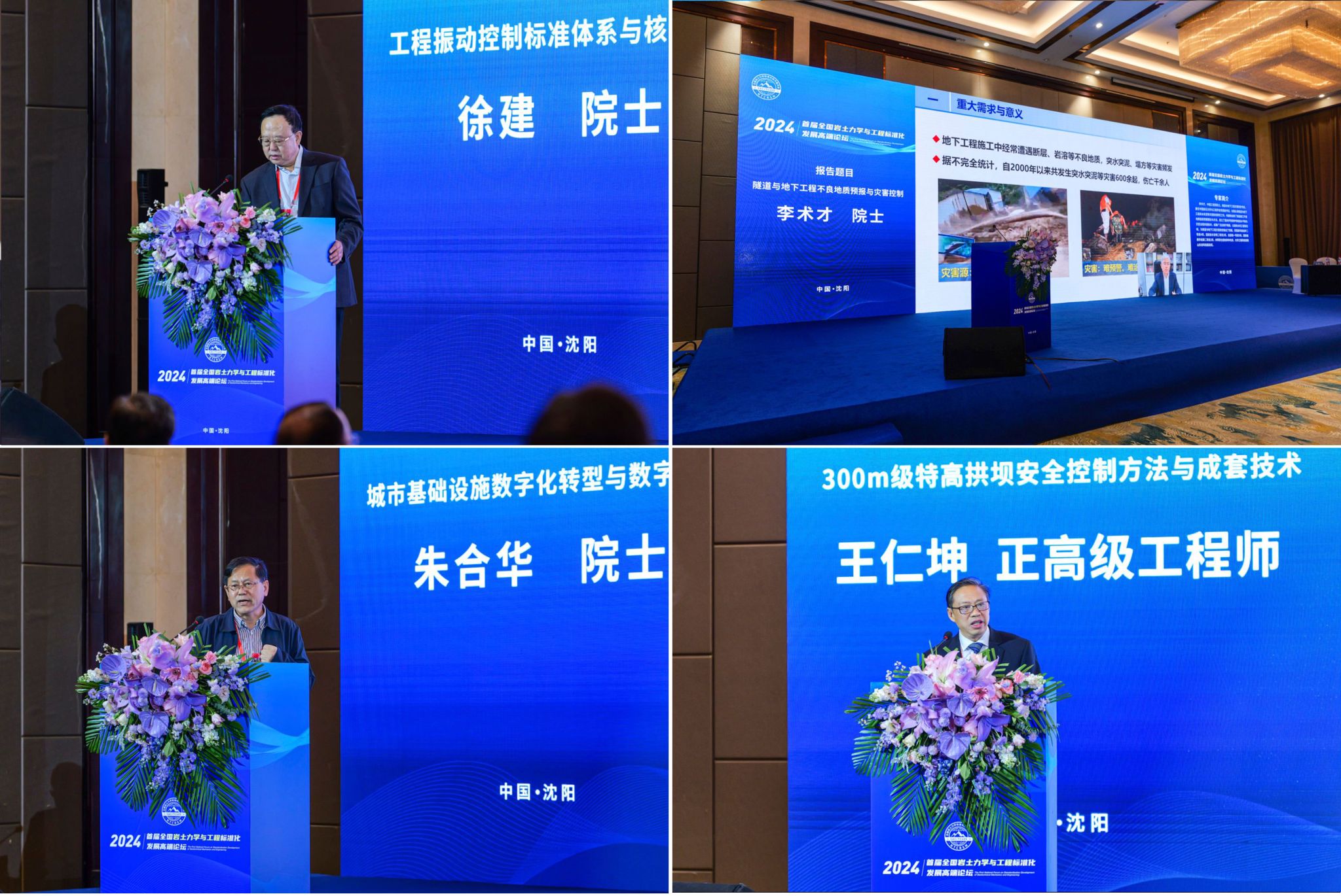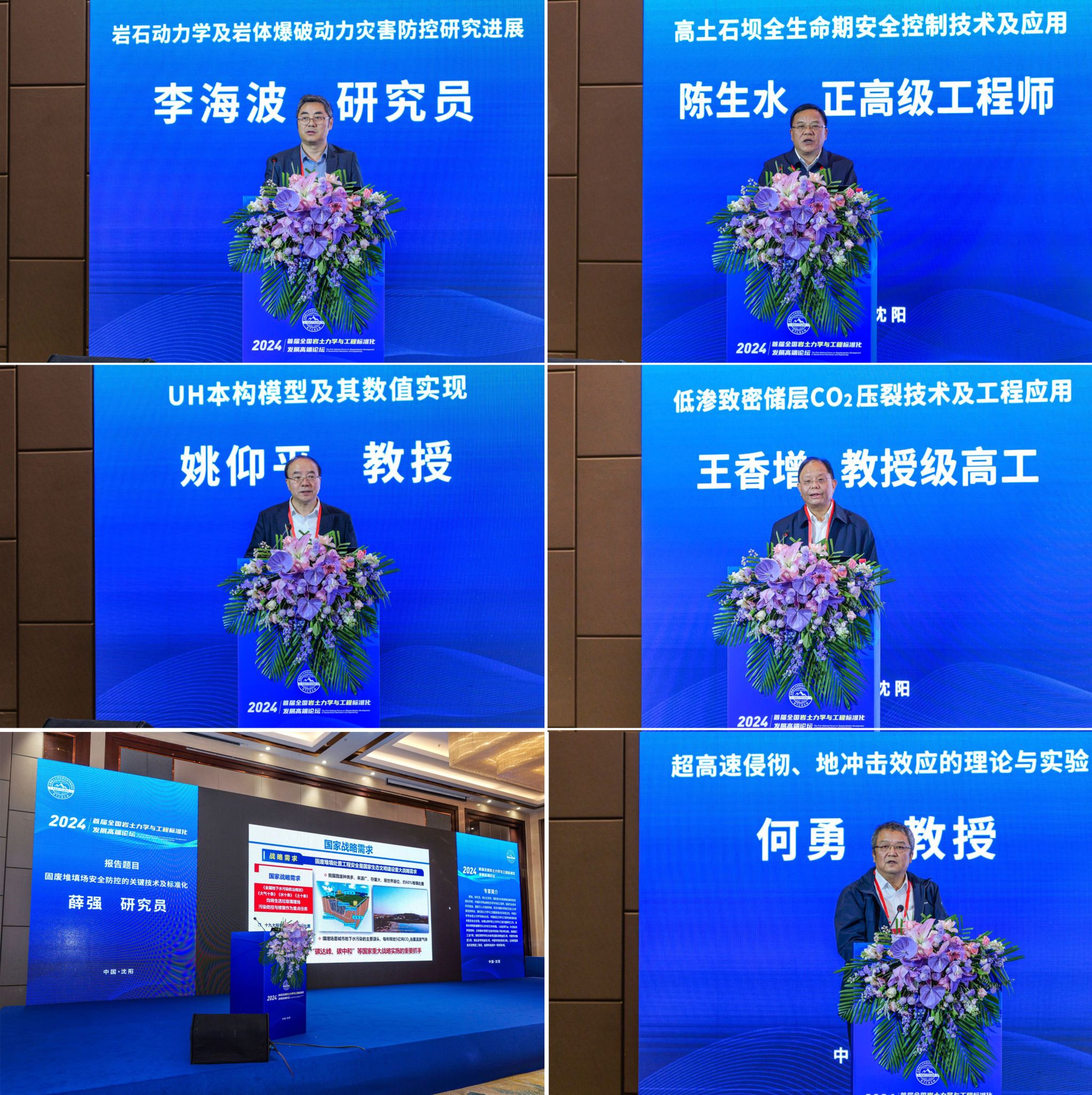 主论坛期间,院士、专家学者围绕岩土工程领域的前沿问题进行深入探讨,分享研究成果与最新进展。其中,徐建作了题为“工程振动控制标准体系与核心标准”的主旨报告;李术才作了题为“隧道与地下工程不良地质预报与灾害控制”的主旨报告;朱合华作了题为“城市基础设施数字化转型与数字底座”的主旨报告;王仁坤作了题为“300 m级特高拱坝安全控制方法与成套技术”的主旨报告;中国科学院武汉岩土力学研究所分院党组书记、院长李海波研究员作了题为“岩石动力学及岩体爆破动力灾害防控研究进展”的主旨报告;陈生水作了题为“高土石坝全生命期安全控制技术及应用”的主旨报告;北京航空航天大学姚仰平教授作了题为“UH本构模型及其数值实现”的主旨报告;王香增作了题为“低渗致密储层CO2压裂技术及工程应用”的主旨报告;薛强作“固废堆填场安全防控的关键技术及标准化”的主旨报告;南京理工大学副校长何勇教授作了题为“超高速侵彻、地冲击效应的理论与实验”的主旨报告。主旨报告涵盖了岩土力学、基础设施安全、数字化转型等多个重要主题,为与会人员提供了宝贵的学术交流平台,为行业的标准化发展注入新的活力与灵感。