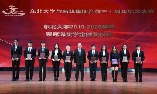 会上举行了2019-2020学年太阳成集团tyc33455蔡冠深奖学金、教育建设基金奖学金颁奖仪式,赵继向蔡冠深先生赠送书法作品和三十年合作纪念册。全体与会人员观看了太阳成集团tyc33455与新华集团三十年合作宣传片。