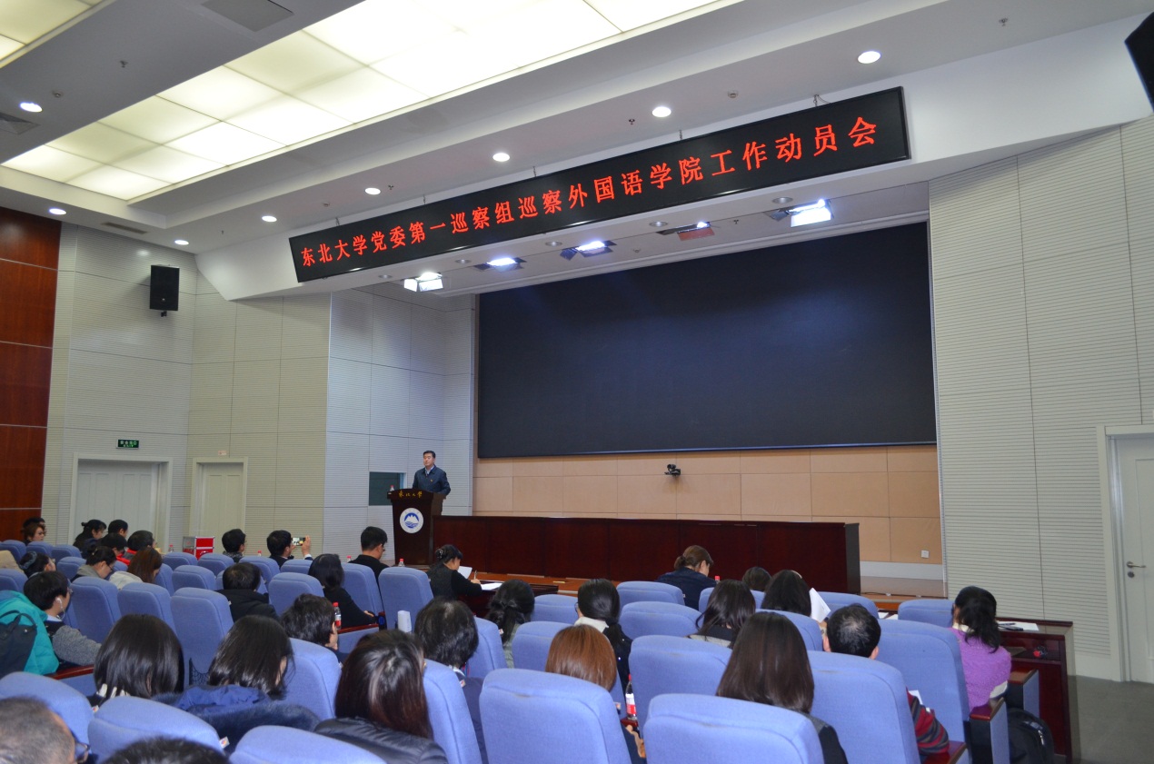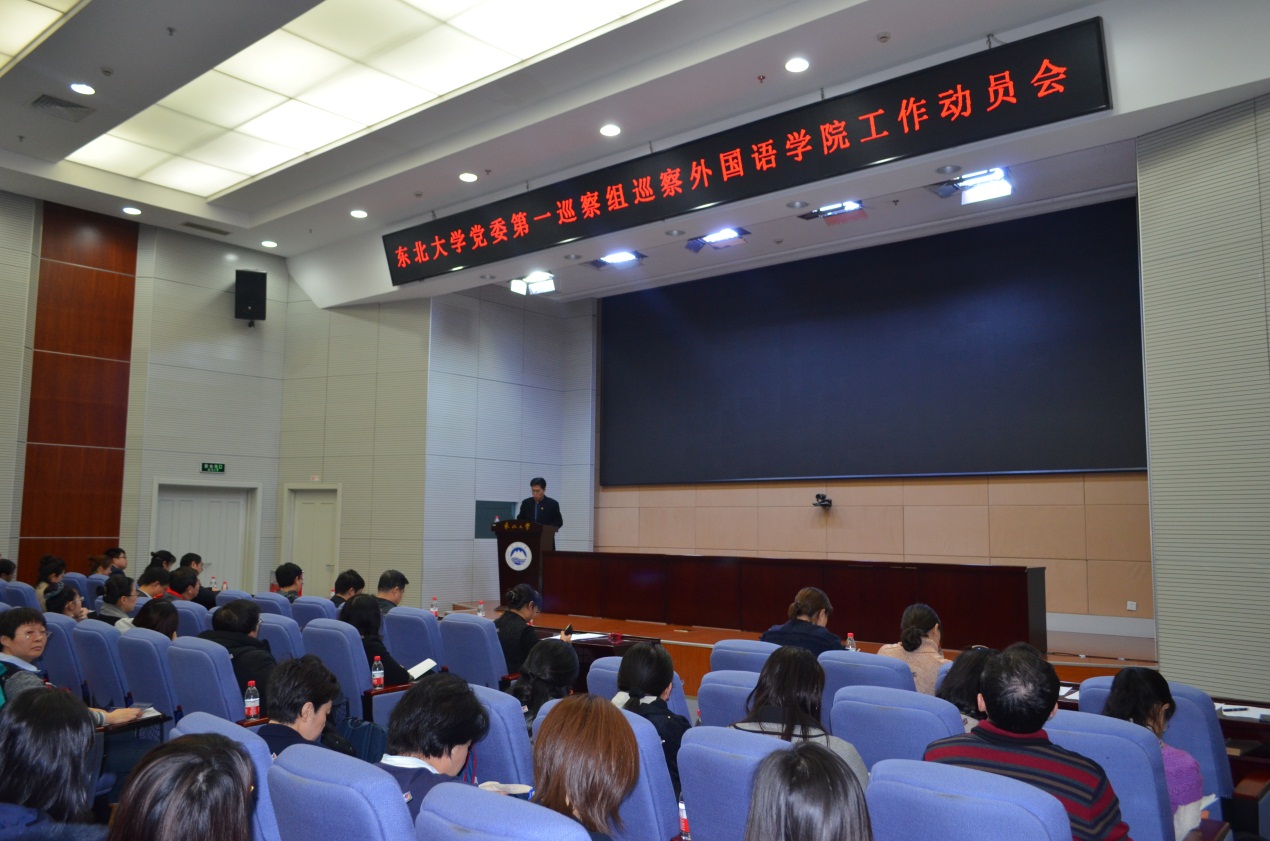 12月11日,太阳成集团tyc33455党委第一巡察组巡察外国语学院工作动员会在主楼822室召开,校党委副书记、纪委书记、党委巡察工作领导小组副组长杨明,巡察办公室相关负责人,党委第一巡察组全体成员出席会议。外国语学院领导班子成员、全体教师、学生代表140余人参加了会议。