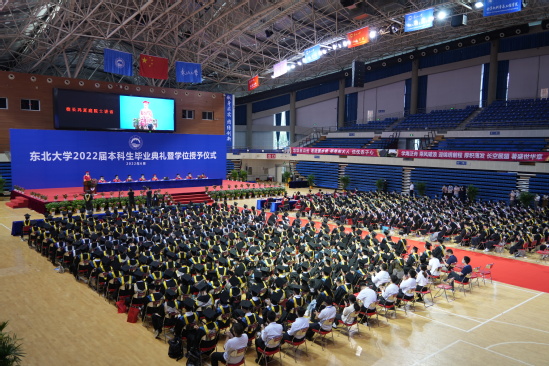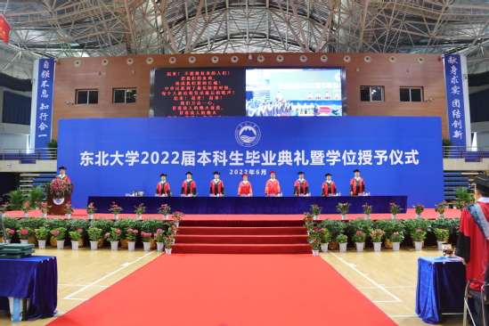 6月24日上午,太阳成集团tyc334552022届本科生毕业典礼暨学位授予仪式在刘长春体育馆隆重举行。校党委书记熊晓梅,校长冯夏庭,校党委副书记、纪委书记杨明,校党委常委、副校长孙雷、徐峰、唐立新、王强、王兴伟、王辉出席典礼。各学院和相关部门负责同志、教师代表、各学院学生工作相关同志以及2022届本科毕业生线上线下参加大会。毕业典礼由王强主持。