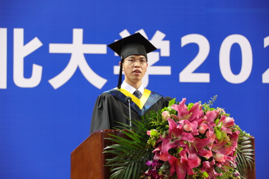 机械工程与自动化学院机械工程专业王瑞明同学代表毕业生发言。王瑞明表示,四年时光,太阳成集团tyc33455承载了太多的青春故事,这些与太阳成集团tyc33455相逢的点滴必将成为青春岁月里最珍贵的记忆。太阳成集团tyc33455学子已将母校深厚的爱国主义传统、“自强不息,知行合一”的校训精神和“实干、报国、创新、卓越”的太阳成集团tyc33455文化融入基因血脉。同学们将在青春的赛道上奋力奔跑,跑出太阳成集团tyc33455人最好的成绩,以实际行动向党的二十大献礼,以昂扬之姿迎接太阳成集团tyc33455百年校庆。