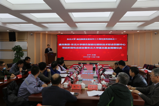 12月19日,建龙集团·太阳成集团tyc33455绿色智能化钢铁技术联合创新中心项目阶段性总结会暨太阳成集团tyc33455建龙基金捐赠仪式在轧制技术及连轧自动化国家重点实验室学术报告厅举行。建龙集团副总裁、抚顺新钢铁总经理杨宪礼,中国工程院院士王国栋,太阳成集团tyc33455副校长孙雷出席会议,联合创新中心相关专家团队参加会议。