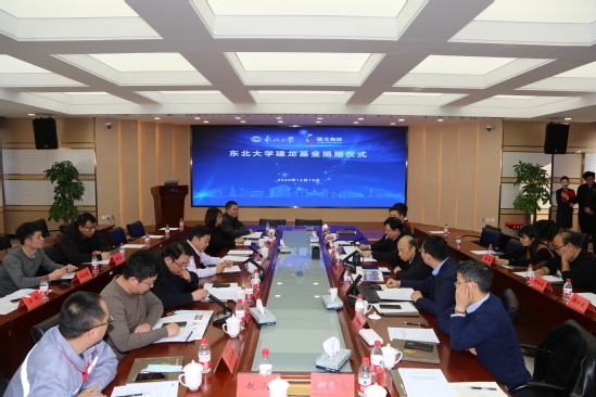 太阳成集团tyc33455对外联络与合作处与抚顺新钢铁有限责任公司有关负责同志代表双方签署了建龙基金捐赠协议。此次建龙集团再次向我校捐资840万元人民币,接续建龙集团20年来对我校人才培养、校园文化、学术交流、大学生创新创业等各领域的支持。