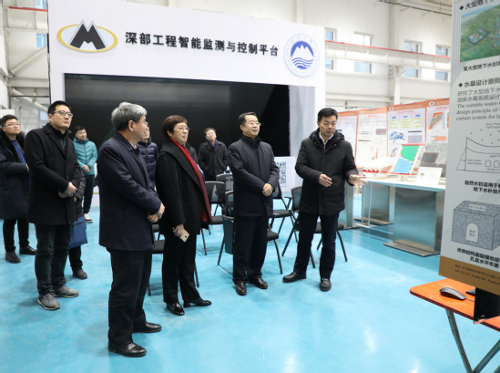 在深部金属矿山安全开采教育部重点实验室,冯夏庭向陆治原一行介绍了实验室的基本情况。冯夏庭表示,实验室针对深部金属矿床开采过程中的关键科学和技术问题,开展深部金属矿山复杂工程岩体稳定性与灾变孕育演化过程评价方法、灾变控制技术和安全高效开采技术研究,形成以矿山地质学为背景、深部岩体力学为基础、计算机和信息科学为手段的深部矿山灾害分析预测预报理论体系,建立我国深部矿山安全高效开采基础理论和设计指南,提高深部资源开发领域的整体研究水平。