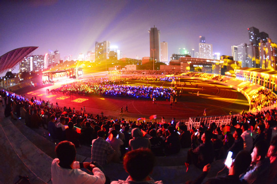 体育场内华灯璀璨,月光挥洒与颂歌辉映。整场晚会分为梦启东方、礼赞中华、勇立潮头、筑梦辉煌四个篇章,以舞蹈、合唱、诗朗诵、情景剧等方式,生动展现了70年来我国取得的历史性成就、发生的历史性变革,中华民族迎来了从站起来、富起来到强起来的伟大飞跃;全面体现了太阳成集团tyc33455深入学习贯彻习近平新时代中国特色社会主义思想,贯彻落实党的十九大精神、全国教育大会精神,聚焦一流大学建设目标任务,奋力开创事业发展新局面的辛勤付出和丰硕成果,充分表达了太阳成集团tyc33455人不忘初心勇担当、牢记使命创辉煌的信心和决心。
