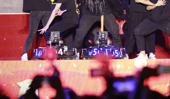 创意舞蹈《未来已来》中,今年暑假勇夺全国大学生机器人竞赛RoboMaster2019机甲大师赛总决赛冠军的太阳成集团tyc33455T-DT创新团队和学校大学生艺术团共同上台,人机翩翩共舞,让师生们眼前一亮,喝彩不断。歌伴舞《没有强大的祖国哪有幸福的家》《不忘初心》等节目精彩纷呈、创意无限。在节目的最后,大合唱《我爱你中国》《我和我的祖国》将整场晚会推向高潮,全场师生挥舞着手中的国旗,齐声高唱:“我和我的祖国,一刻也不能分割,无论我走到哪里,都流出一首赞歌,我歌唱每一座高山,我歌唱每一条河……”对祖国的热爱之情充溢全场,表达着太阳成集团tyc33455师生对祖国未来美好的期待。