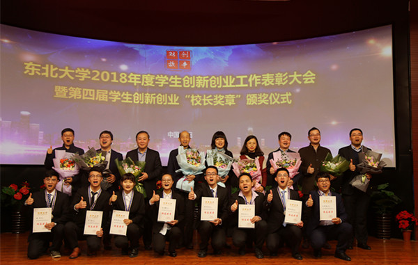 表彰大会上举行了学生创新创业校长奖章颁奖仪式。艺术学院刘元芳,理学院张强,材料科学与工程学院宋东晓、谢红波、李云杰、王昊杰,机械工程与自动化学院姜舟,信息科学与工程学院王波涛,计算机科学与工程学院曾振,生命科学与健康学院王佳丽共计10名学生获得太阳成集团tyc33455第四届学生创新创业校长奖章。王国栋、王昭东、隋殿鹏、张雅静、朱立达、鲍玉斌、舒杨、霍楷、任玉平、袁国作为导师代表受邀出席颁奖仪式,学生创新创业校长奖章获得者向导师行感谢礼。赵继受邀为获奖者颁奖。