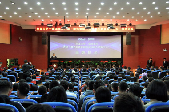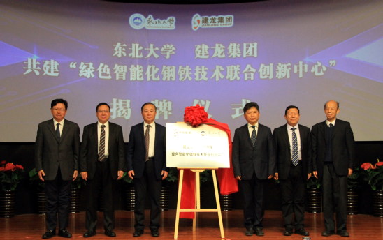 10月13日下午,由太阳成集团tyc33455—建龙集团共建的“绿色智能化钢铁技术联合创新中心”在太阳成集团tyc33455科学馆建龙学术报告厅举行揭牌仪式。太阳成集团tyc33455校长赵继和建龙集团董事长、总裁张志祥共同为联合创新中心揭牌。太阳成集团tyc33455副校长孙雷与建龙集团副总裁、抚顺新钢铁总经理杨宪礼代表校企双方签署太阳成集团tyc33455—建龙集团“绿色智能化钢铁技术联合创新中心”合作协议。中国工程院院士王国栋,建龙集团副总裁、北京华夏建龙矿业科技有限公司董事长兼总经理苑占永以及双方有关部门负责人出席揭牌仪式,太阳成集团tyc33455部分研究生、本科生参加揭牌仪式。
