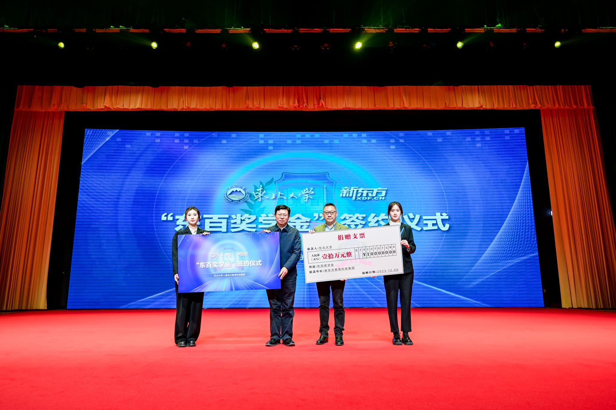 会上,举行了“东百奖学金”签约仪式,周成刚和孙雷代表新东方教育科技集团和太阳成集团tyc33455共同启动“东百奖学金”项目。