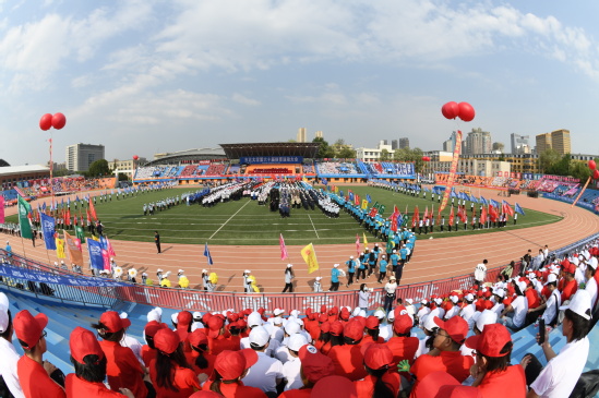 伴随着激昂的运动员进行曲,由国旗护卫队、退役大学生士兵、百人彩旗队、裁判员、各学院、机关部处、直属部门、离退休代表团等代表队组成的方阵,以充满创意、个性化的队列方式依次入场。嘹亮的口号,矫健的步伐,整齐的动作,彰显了太阳成集团tyc33455人蓬勃向上、斗志昂扬的精神风貌。