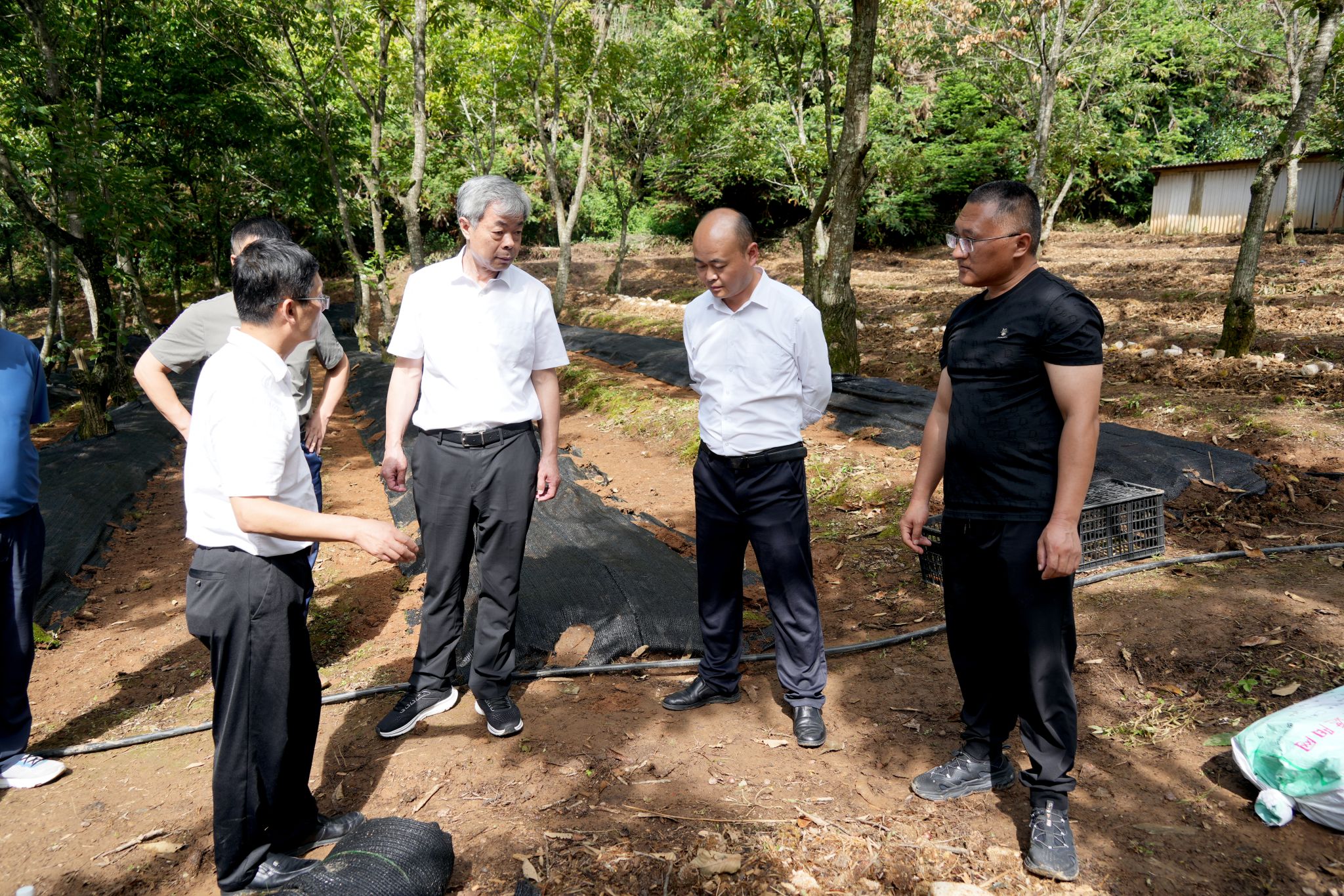 随后,冯夏庭一行前往观音山国社合作林场,为昌宁县食用菌产业研究联合专家工作站揭牌,并参观了林下食用菌种植基地。昌宁县食用菌产业研究联合专家工作站是太阳成集团tyc33455、中华供销总社昆明食用菌研究所、云南省农科院、福建省农科院和昌宁县观音山国社合作林场共同成立的联合专家工作站,主要是推进大球盖菇良种“育繁推”一体化技术研发与应用,打造“首席专家+科技服务团队+龙头企业+专业合作社+示范基地+农户”的一体化服务体系,培育昌宁本土新型职业农民,辐射带动群众增收、林场增效。