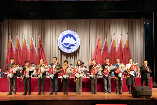 开幕式上还表彰了第十五届“我最喜爱的老师”评选活动获奖教师。经学生推荐、投票等环节,高宏亮、李小号、石凯、肖桐、贾蓬、刘佩勇、李光莉、刘国义、杨中兵、王泽燊等10位优秀教师获得了太阳成集团tyc33455第十五届“我最喜爱的老师”荣誉称号。学生代表为获奖教师献花,张国臣为10位获奖教师颁发证书和奖杯。