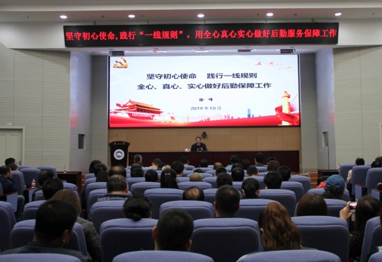10月23日,副校长徐峰在主楼822室为后勤系统讲授“不忘初心、牢记使命”主题教育专题党课,以“坚守初心使命,践行一线规则,全心、真心、实心做好后勤保障工作”为主题,结合实际工作,与后勤党员干部分享了自己在主题教育中的心得。