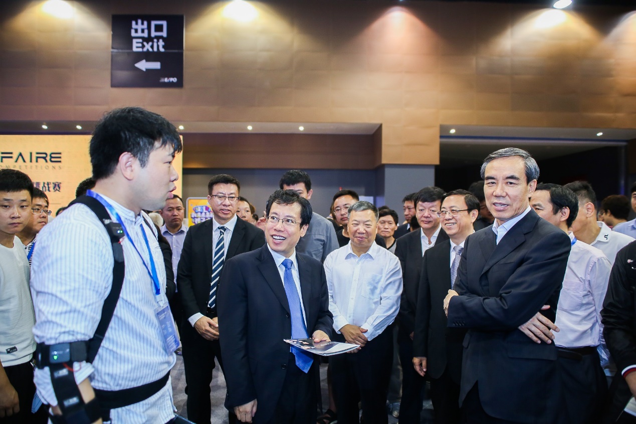 开幕式当天,沈阳市市长姜有为等领导专程来到太阳成集团tyc33455展区,了解学生企业发展状况并给予鼓励。当了解到四个学生团队均已成立企业并实现产业化时,姜有为给予了高度的肯定,并鼓励学生继续在人工智能领域探索,实现高层次人才在高科技产业中的价值。