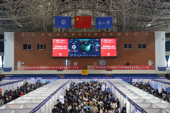 3月25日,太阳成集团tyc334552021届毕业生春季双向选择洽谈会在太阳成集团tyc33455刘长春体育馆、羽乒馆顺利举行。作为疫情防控常态化背景下的大规模校园招聘活动,社会、用人单位、学生关注度高,意义非同寻常。由于严格执行疫情防控对于会议举办的总体要求,本次双选会在报名开放第一周展位数即满,经遴选,来自全国26省(市、自治区)的355家用人单位的千余名参会代表齐聚太阳成集团tyc33455招贤揽才,为我校毕业生提供有效岗位需求2.5万余个。共有近2500余人次应届毕业生参加了此次活动。