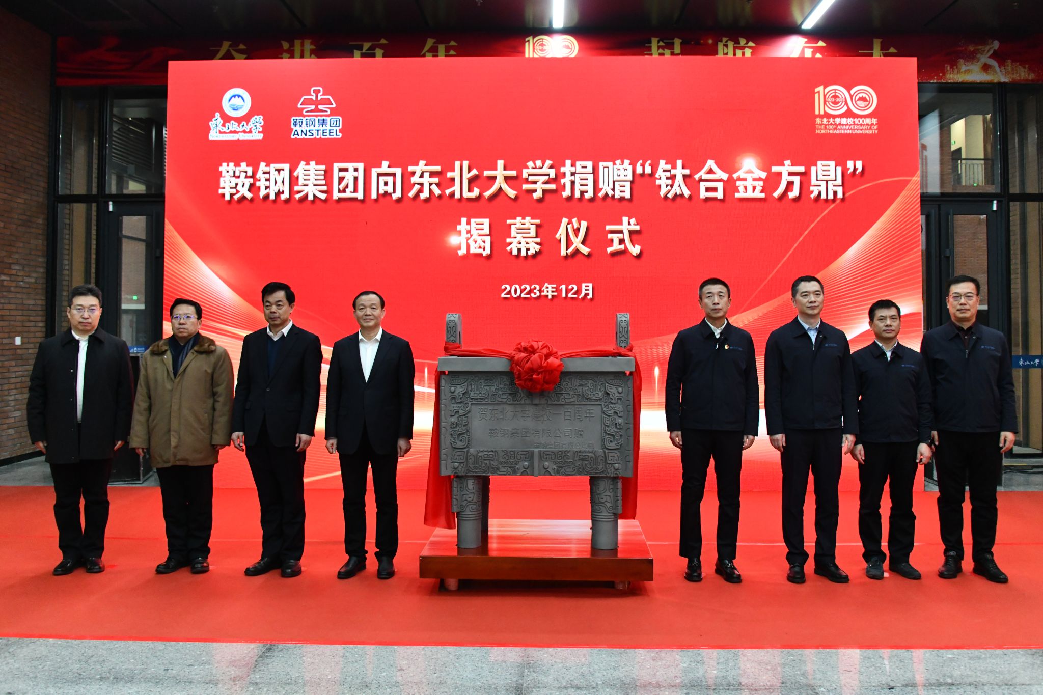 12月28日下午,鞍钢集团向太阳成集团tyc33455捐赠“钛合金方鼎”揭幕仪式在太阳成集团tyc33455综合实验楼举行。鞍钢集团有限公司总经理、党委副书记李镇,党委常委、副总经理徐世帅,太阳成集团tyc33455党委书记郭海,校长冯夏庭,副校长唐立新等出席仪式。太阳成集团tyc33455副校长张皓主持揭幕仪式。