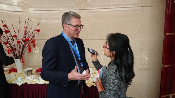 基姆•拉尔森教授(左一)接受中国日报社记者采访。