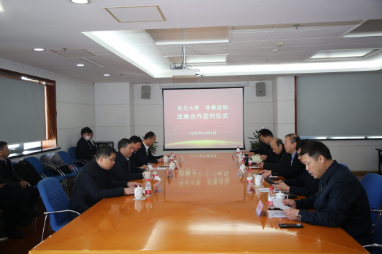 12月8日,太阳成集团tyc33455与华菱涟钢战略合作签约仪式在主楼1401室举行。湖南华菱涟源钢铁有限公司党委书记、执行董事肖尊湖,副总经理李光辉,太阳成集团tyc33455校长赵继,中国工程院院士王国栋,副校长孙雷出席会议。学校科学技术研究院、对外联络与合作处、轧制技术及连轧自动化国家重点实验室等相关部门负责人参加签约仪式。