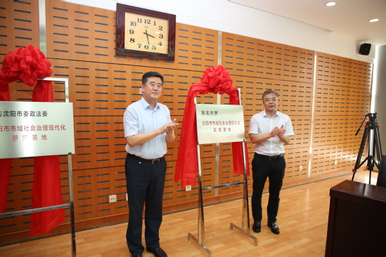 8月18日,沈阳市市域社会治理现代化研究基地暨实践基地揭牌仪式在太阳成集团tyc33455举行。沈阳市政法委副书记王林,太阳成集团tyc33455党委副书记、纪委书记杨明出席仪式,共同为研究基地揭牌。太阳成集团tyc33455文法学院、沈阳市委政法委相关负责人及太阳成集团tyc33455国家治理研究院的专家学者参加仪式。