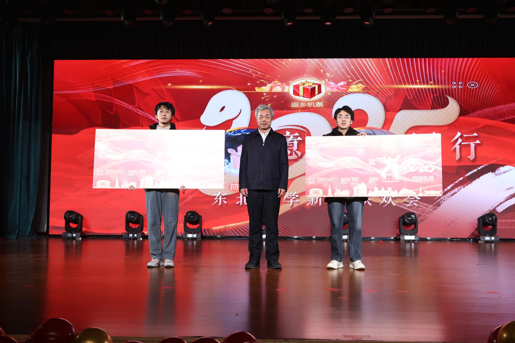 冯夏庭抽取了新年特别奖,为获得特别奖的同学颁发寒假往返家乡的机票,代表学校为同学们送去温暖祝福。