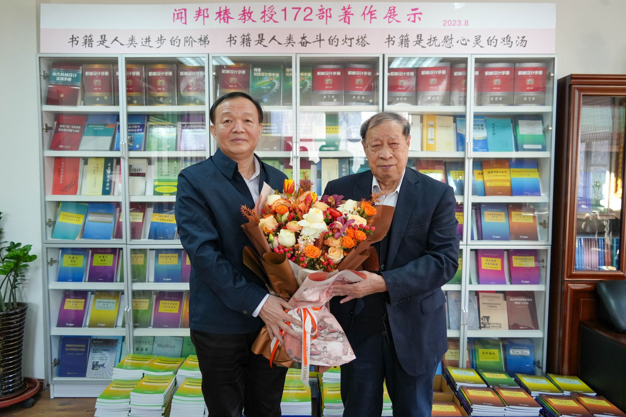 在新机械楼,郭海亲切询问了闻邦椿院士的身体状况和生活情况,感谢他为国家和学校发展作出的重要贡献,表示闻邦椿院士在促进学生健康成长、全面发展等方面潜心钻研,笔耕不辍,用满腔热爱诠释了教育者的担当作为,希望闻邦椿院士向更多师生传授科学的方法论和正确的工作方法,为学校高质量人才培养献智献策。闻邦椿对学校的关心与问候表示感谢,介绍了近期的学术成果和最新出版的著作,表示将继续勤奋工作,为学校事业发展贡献力量。