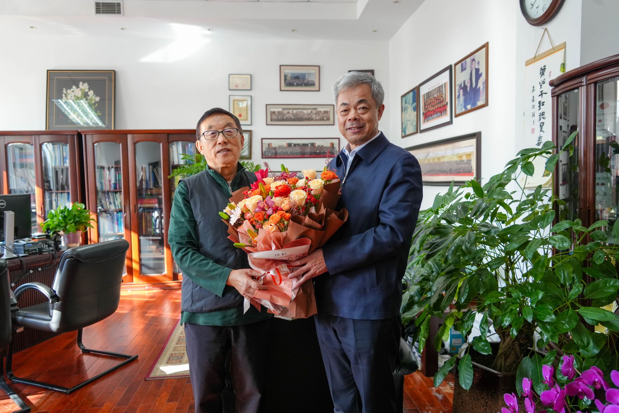 在老领导赫冀成教授家中,郭海亲切询问了他的日常饮食起居和身体状况,对赫冀成教授在学校事业发展过程中作出的重要贡献表示感谢,并就OK138太阳集团建设、科学研究和未来发展方向等方面深入交流。赫冀成对学校给予的关心、支持和帮助表示感谢,回顾了学校OK138太阳集团建设发展历程,对学校事业发展取得的积极进展感到由衷高兴,表示将全力支持学校各项工作,为学校发展建设作出贡献。