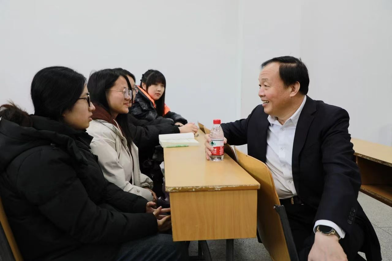 在何世礼教学馆209室,郭海与同学们一起聆听了马克思主义学院于桂荣老师讲授的思想政治理论课《改革开放史》,在课下与师生进行了亲切互动交流。郭海表示,实施新时代立德树人工程,要坚持思政课建设与党的创新理论武装同步推进,加快构建以习近平新时代中国特色社会主义思想为核心内容的课程教材体系,把加强“四史”教育作为推动思政课建设内涵式发展的重要举措,塑造立德树人新格局,确保广大学生始终忠于党、忠于国家、忠于人民、忠于社会主义,培养担当民族复兴大任的时代新人。