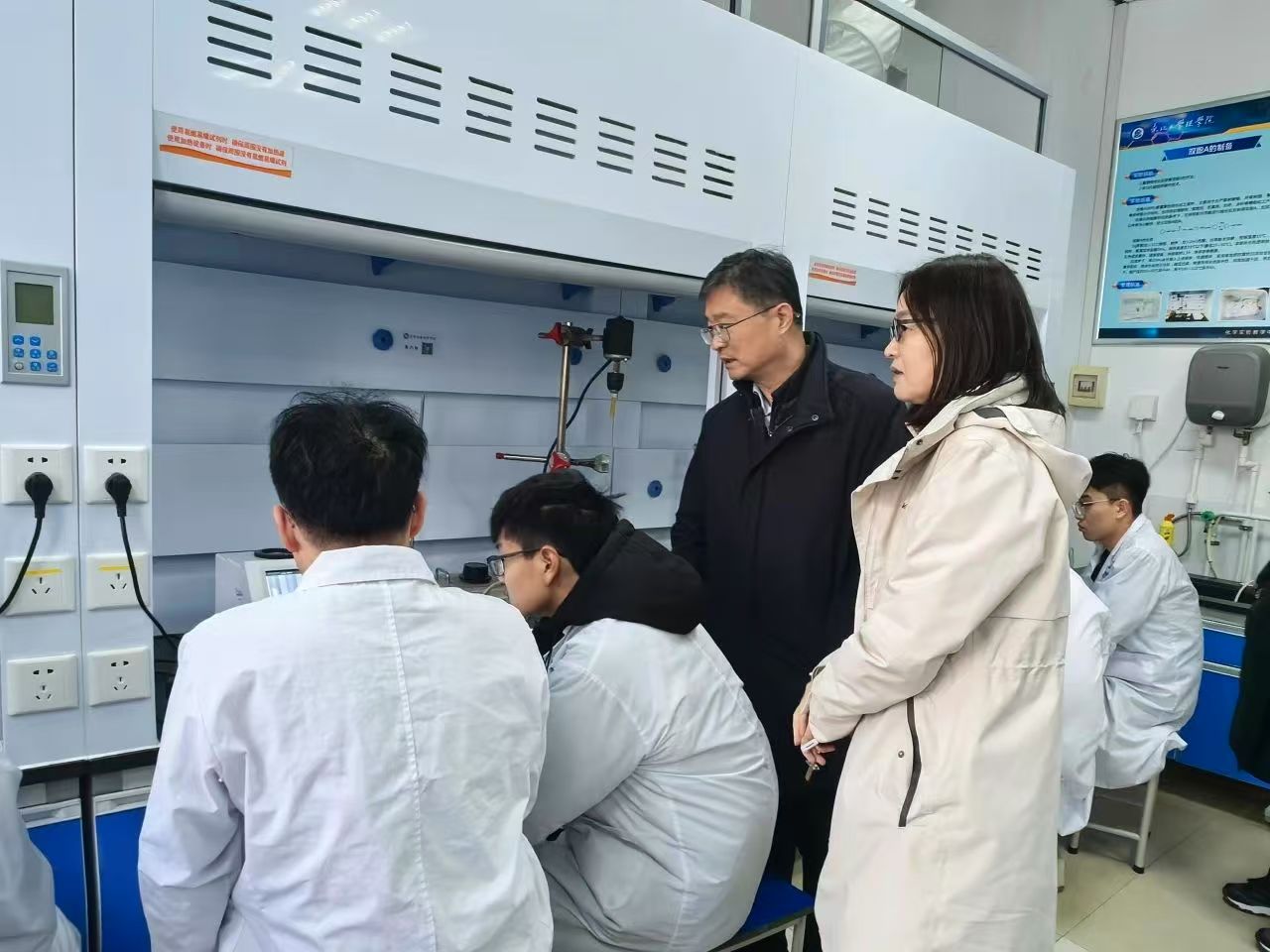在学生第二食堂,郭海详细了解了食品安全管理落实情况及学生用餐情况,要求严格把控食品安全,为学生提供健康、优质的餐饮服务。在学生第二宿舍,郭海与理学院2024级应化方肇伦班的学生亲切交流,鼓励学生紧跟时代步伐,厚植人工智能素养,让人工智能与所学专业深度交融,努力成长为具备突出创新能力的复合型优秀人才。郭海强调,要高度重视宿舍的安全管理和生活设施保障,为学生创造安全、舒适的居住环境。在分析测试中心,郭海实地考察大型实验设备运行和应用情况,并与实验员进行了深入交流。郭海指出,分析测试中心是学校科研工作的重要支撑平台,要确保设备高效运行,为师生科研提供优质服务。在大成教学馆,郭海检查新学期教学运行情况,详细了解教室设备、课程安排及教师授课情况,强调教学是学校的核心工作,必须确保教学质量和秩序,为师生提供良好的教学环境。