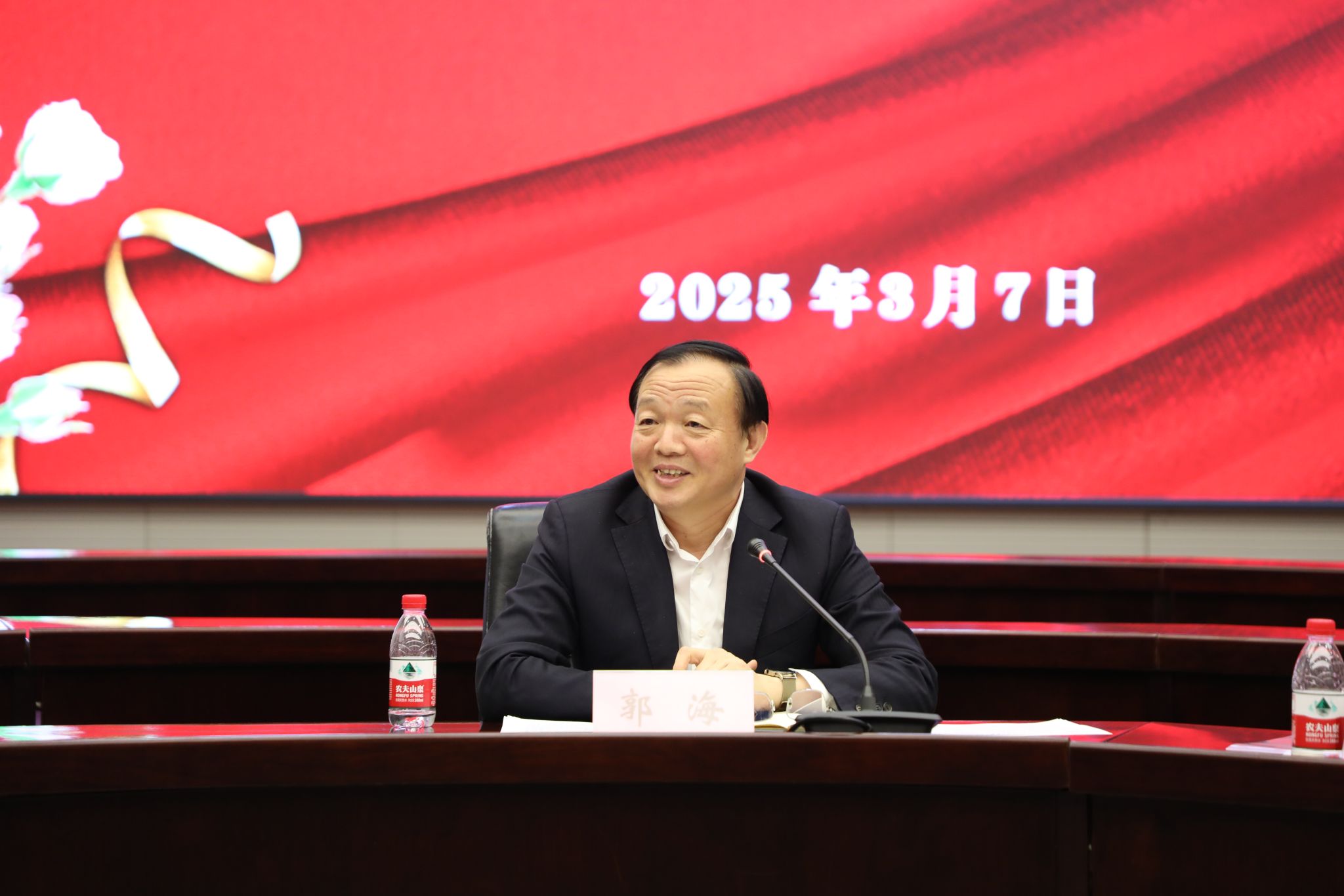郭海强调,要高度重视妇女工作,以更加务实的举措关心关爱女教职工,为学校新时代新征程创建中国特色世界一流大学凝聚起更为强大的巾帼力量。一是营造尊重女性的校园风尚。要保护女教职工的合法权益和特殊利益,为女教职工创造更加公平、更加包容的工作环境。要选树先进典型,讲好女教职工的先进事迹和奋斗故事。要建好各级妇女组织,让其真正成为女教职工信得过、靠得住、离不开的“娘家人”。二是加大政策支持力度。要落实好有关身心健康、子女教育、职业发展等方面的政策措施,加大对女性人才的支持力度,进一步完善体现女教职工发展规律的评价体系和培养体系,为女教职工更好施展才华、发挥作用提供政策保障。三是搭建成长发展平台。要探索女教职工成长发展规律,不断拓宽服务关爱女教职工的项目平台、文化活动,以丰富多彩的女性文化助力妇女事业发展,以女教职工全面进步助推学校事业改革发展。