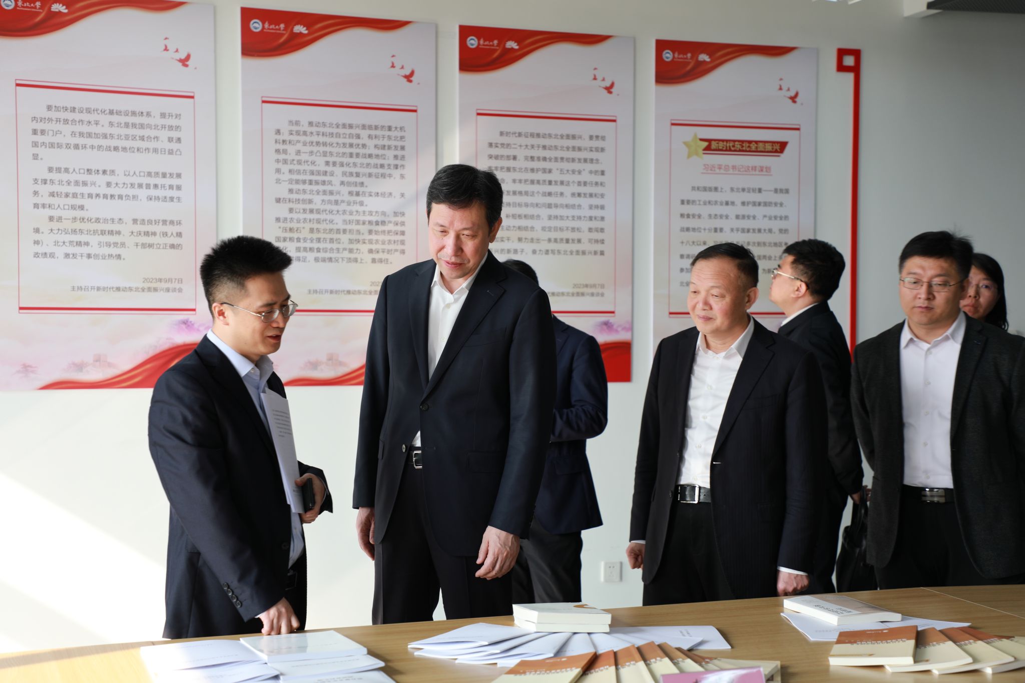 靳国卫实地考察了马克思主义学院、中国东北振兴研究院、梁思成纪念馆,深入了解学校哲学社会科学建设发展情况,在马克思主义学院沉浸式教学体验中心、数字教室现场分别观摩了《共和国工业奠基地》思政课专题教学和《长征精神》课程学习小组研讨,现场与师生亲切交流,对学校的校园建设、办学成绩和师生风貌给予肯定。