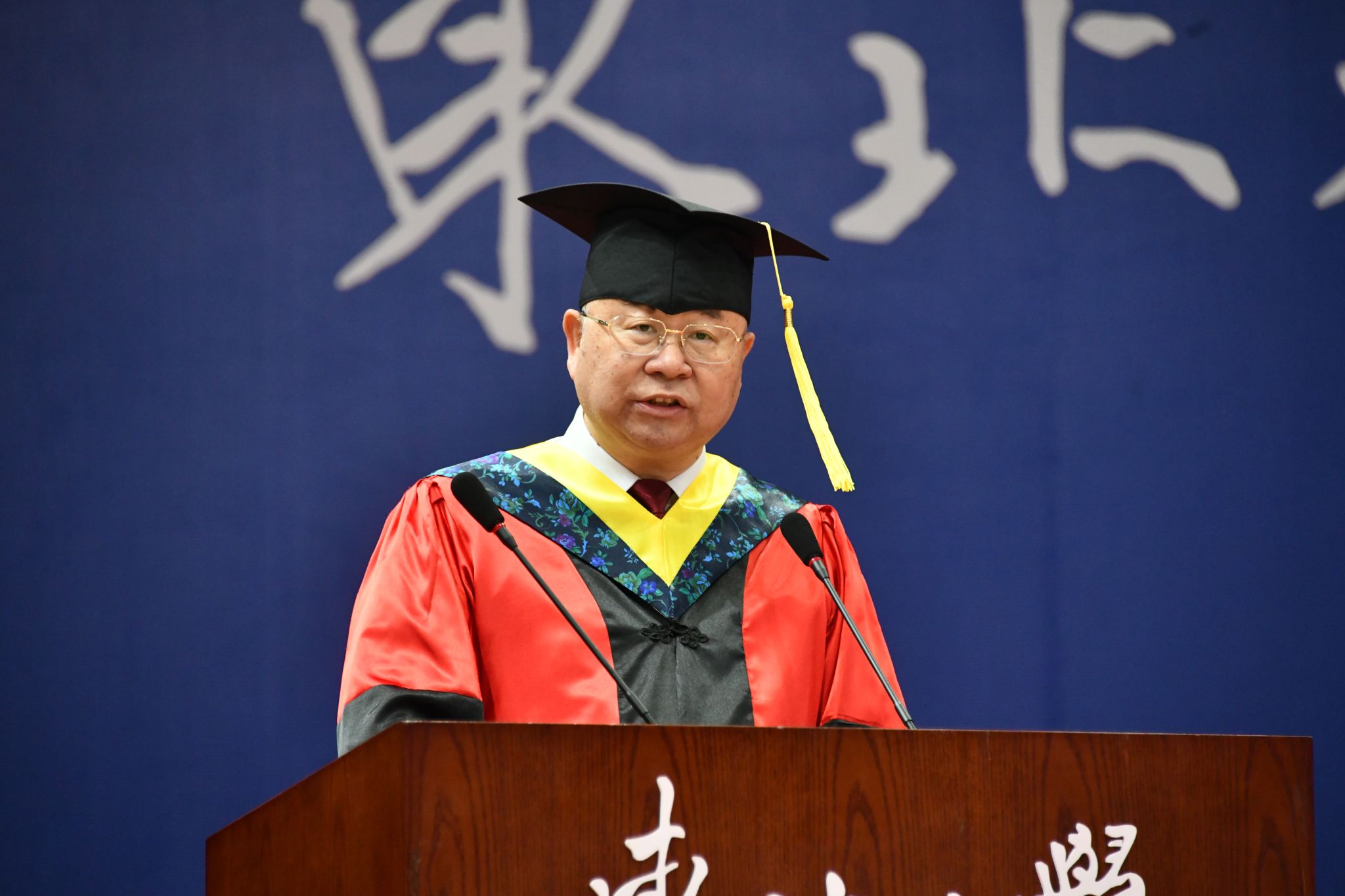 冯夏庭代表学校向顺利毕业、即将踏上人生新征程的全体毕业生表示最热烈的祝贺;向悉心培养和一路关爱同学们的师长、亲友表示衷心的感谢。冯夏庭以“做人工智能时代的追光者”为主题,对全体毕业生提出三点希望寄语。一是追寻知识之光,做人工智能时代的弄潮儿。始终保持好奇心、危机感、敬畏心,不断钻研专业知识,以“专”的深度铸就发展高度,持续拓展认知领域,以“兼”的宽度探寻更多未知,以“专”为核心,以“兼”为补充,紧跟时代、善于创新、勇于突破、不断超越,在人工智能时代挥洒自如,得心应手。二是追寻思想之光,做人工智能时代的驾驭者。在“快时代”中学会“慢下来”,博观而约取,厚积而薄发,时时反思己身,保持应有的判断和理性,以批判性思维认知世界,以系统性思考升华自我。三是追寻实干之光,做人工智能时代的行动派。保留太阳成集团tyc33455人的“实干”底色,把握时代脉搏,在人工智能时代找准方向、绘就蓝图,用行动践行伟大梦想、用奋斗诠释无悔青春,踔厉奋发、笃行不怠,有始有终、善作善成,干出一番大事业、开创一方新天地。