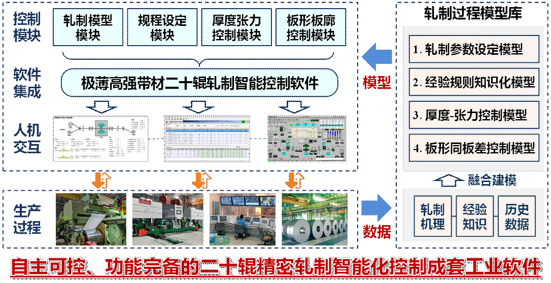 孙杰教授主持完成的“极薄高强带材二十辊精密轧制智能控制技术研发与应用”项目荣获冶金科学技术奖特等奖。项目面向精密轧制控制技术“卡脖子”问题,构建极薄带材轧制理论体系,提出数据机理融合建模与协调优化方法,形成复杂辊系智能配置与表面质量优化、极限变形高精度模型与规程智能设计、非稳态过程厚度与张力协调控制、板形与同板差自适应协调优化等创新技术,研发出自主可控的精密轧制智能控制成套工业软件。建成我国自主开发控制系统的二十辊轧制机组,对顶级引进系统进行升级优化,实现国产化替代,推广到有色行业并实现全套技术对外输出。核心技术已经应用于32条精密轧制生产线,涵盖各厚度、强度等级和窄、中、宽幅机组,实现了高端不锈钢、电工钢、特种合金等高质量自主供给,保障了尖端领域对关键原材料的需求。
