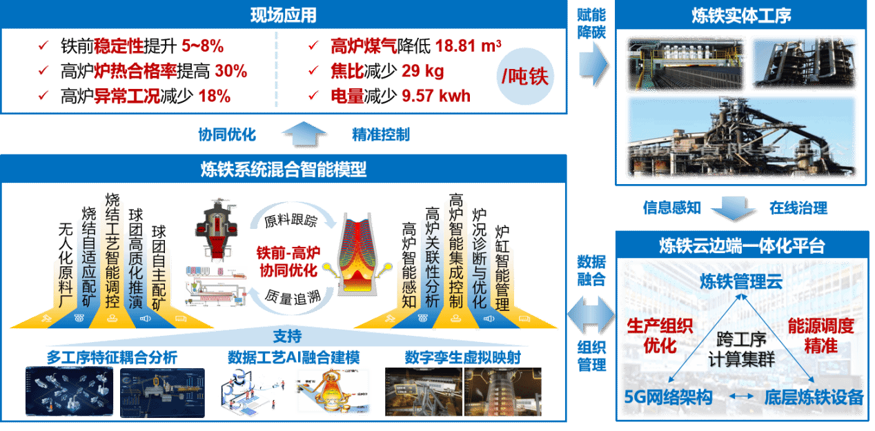 唐珏副教授主持完成的“高炉大数据智能降碳关键技术研发与应用”项目荣获冶金科学技术奖一等奖。在传统炼铁降碳手段成本高、收益递减的背景下,项目以高炉为核心,以数据为基础,以智能为引擎,探索出一条“数字孪生驱动—混合智能支撑—多工序协同”的炼铁智能降碳新路径,突破传统降碳路径投入高、收益低的瓶颈,实现炼铁全流程的状态精准感知、智能协同控制与多目标最优调度。依托数字孪生与信息物理系统,打通“原料-烧结-球团-高炉-能源”链条,解决传统工序分割与信息孤岛问题,支撑全流程能效协同优化;研发面向铁前复杂原料与装备的智能感知与调控技术,提升原料配置精准性与装备运行稳定性,夯实高炉顺行与稳定降碳基础;打造融合数据驱动、机理模型与专家知识的高炉智能冶炼系统,推动高炉运行从经验控制迈向智能决策。项目成果已在国内十余条生产线落地,具备强示范性与行业引领价值,为钢铁行业实现碳达峰、碳中和目标提供了实践范例。
