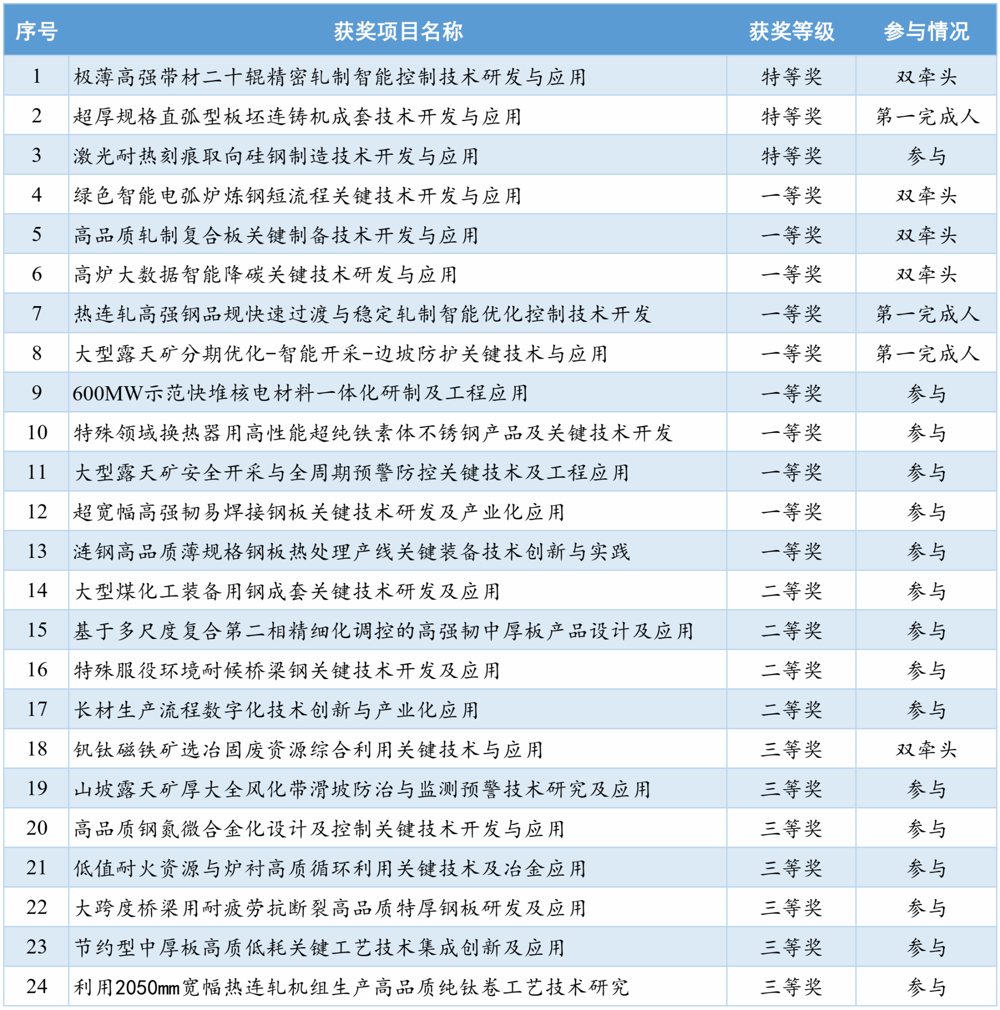 据悉,冶金科学技术奖由中国钢铁工业协会和中国金属学会共同发起并设立,旨在推动冶金工业科技进步和科技创新工作,是中国冶金行业最高科学技术奖。该奖每年组织评审、奖励一次,分为“地质、矿山及资源”“炼铁”“炼钢”“轧钢及制品”“材料”“冶金装备、建设及自动化” “管理及环境工程”“一线工人科技成果”共8个评审组。2025年度冶金科学技术奖共评出获奖项目141项,其中,特等奖3项、一等奖28项、二等奖38项、三等奖72项。