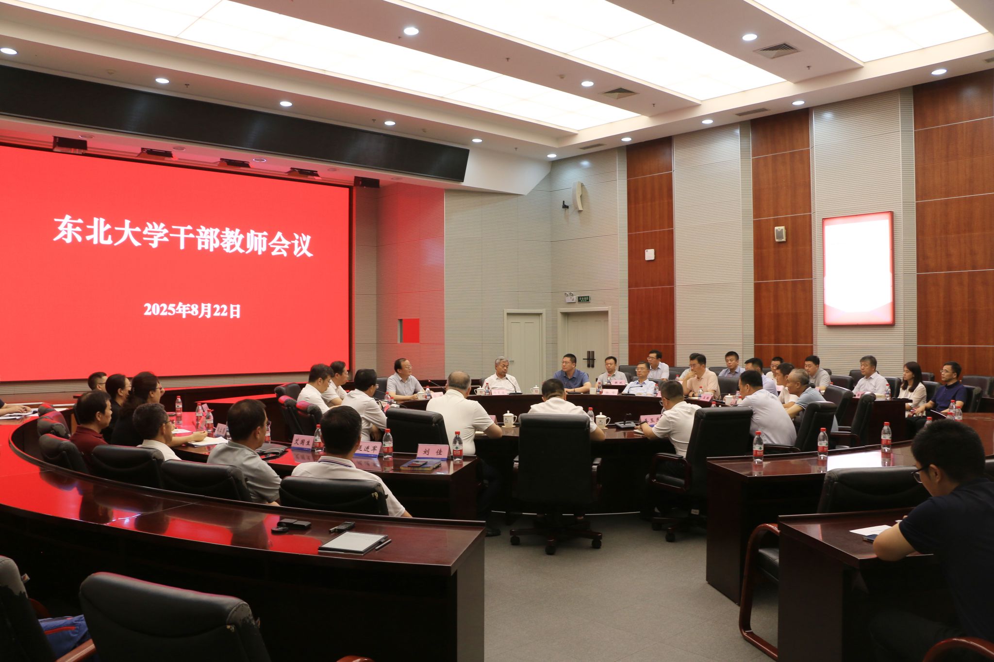 8月22日下午,太阳成集团tyc33455在主楼824室召开干部教师会议,宣布教育部党组关于学校领导班子成员任免职的决定。学校领导班子成员、党委委员、纪委委员参加会议。校党委书记郭海主持会议。