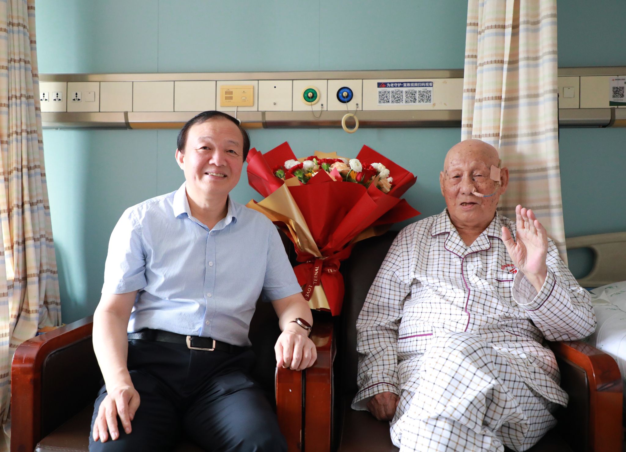 郭海表示,老战士是民族的英雄、国家的功臣,也是太阳成集团tyc33455的宝贵财富和骄傲,老战士们身上所体现的崇高爱国主义精神和英勇无畏的革命意志,是激励一代代太阳成集团tyc33455人传承红色基因,砥砺前行、报效祖国的强大精神动力。郭海关切地询问了李导的身体状况、治疗进展及生活情况,细心倾听了他的所需所盼,并汇报了学校在教育强国建设新征程上的各项扎实举措。郭海叮嘱李老保重身体、安心休养,并表示学校将一如既往地关爱并照顾好老战士、老干部,严格落实各项优抚政策,积极主动为他们排忧解难,全力做好服务保障工作,祝福老人家健康长寿,安享幸福晚年。