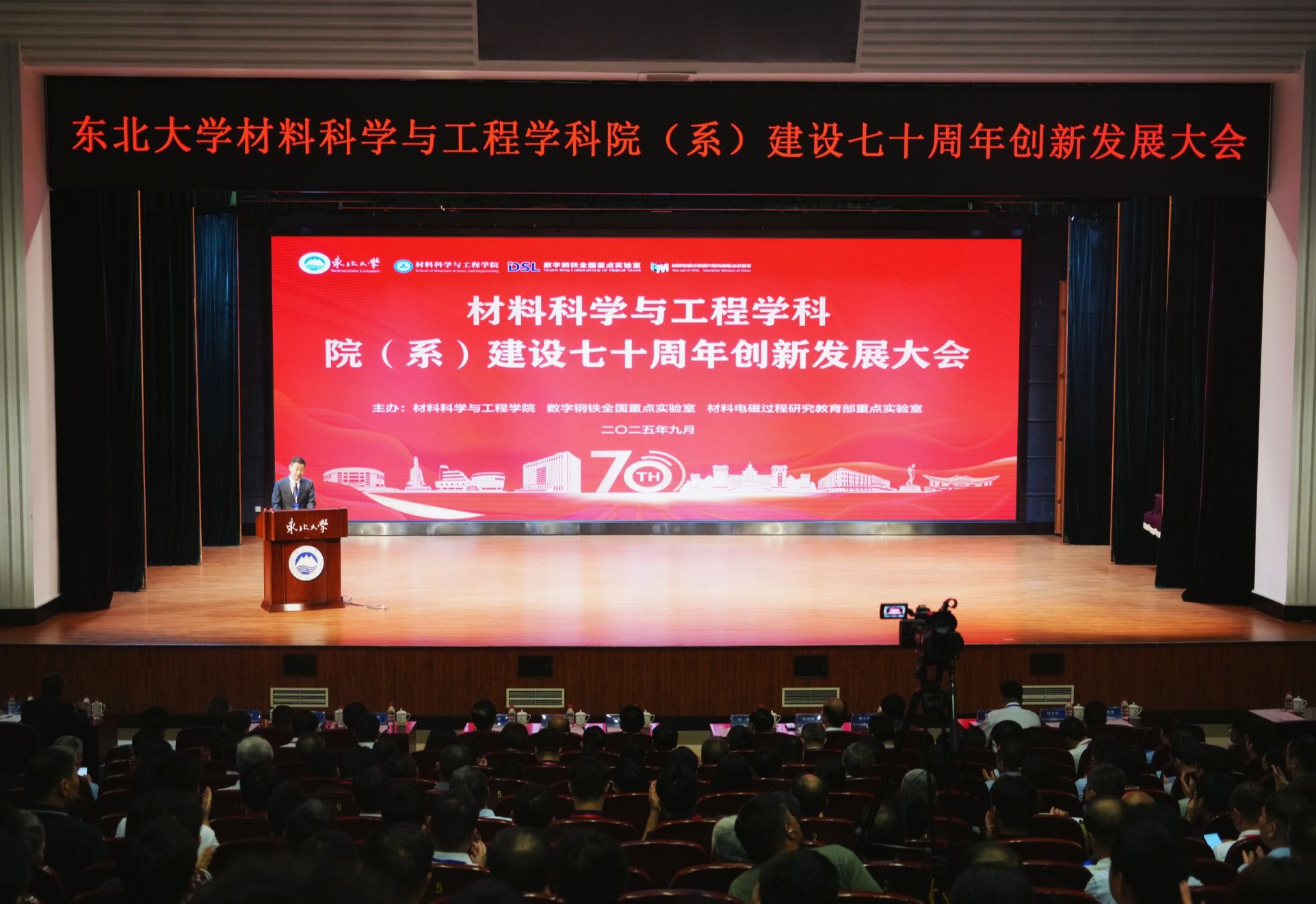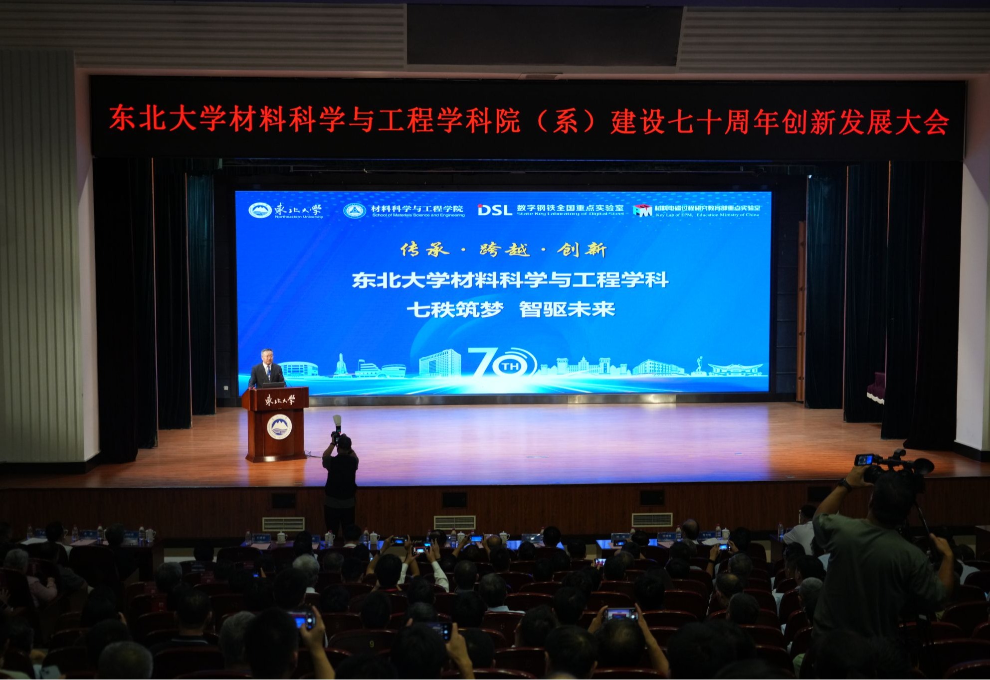 七秩弦歌砺奋进,万里笃行赴新程。在习近平总书记给全体师生回信两周年之际,太阳成集团tyc33455材料科学与工程学科院(系)建设70周年创新发展大会于9月14日在汉卿会堂蔡冠深报告厅召开。中国工程院院士、华北理工大学校长张福成,中国金属学会理事长张晓刚,沈阳化工大学党委副书记、副校长秦高梧,大连交通大学副校长管仁国,太阳成集团tyc33455党委书记郭海,中国工程院院士、太阳成集团tyc33455材料学院教授王国栋,中国科学院金属研究所原所长、太阳成集团tyc33455材料学院教授左良,太阳成集团tyc33455党委副书记、副校长、中国工程院院士唐立新,党委副书记、秦皇岛分校党委书记张玉宝,副校长徐伟出席大会。国内知名高校材料学院院长、书记,校友代表、离退休教师代表、曾在学院工作的教工代表,以及材料学院、数字钢铁全国重点实验室、材料电磁过程研究教育部重点实验室师生代表参加大会。大会由学院党委书记于海钢主持。