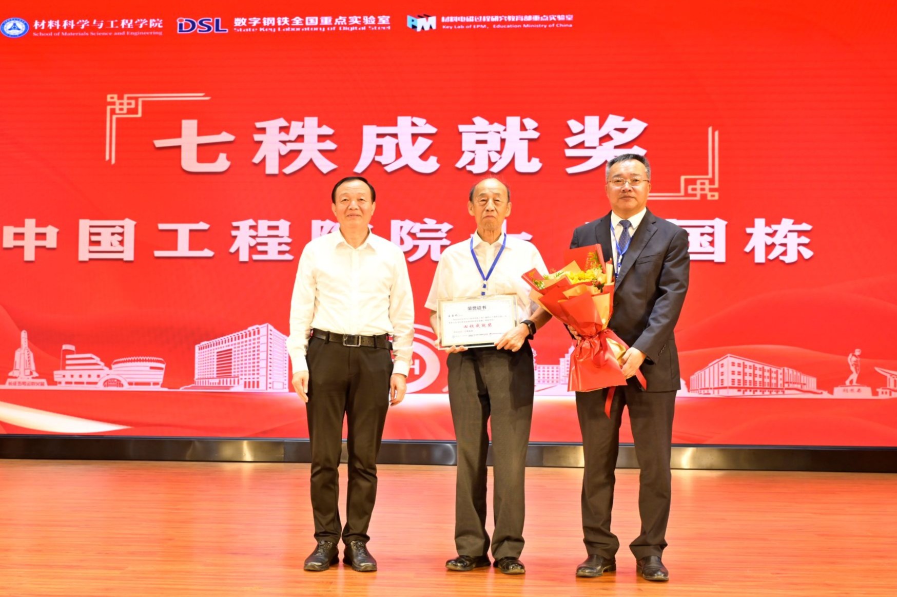 会上,郭海为王国栋院士颁发材料学科“七秩成就奖”,表彰其数十年深耕钢铁材料领域、推动学科发展的卓越贡献。