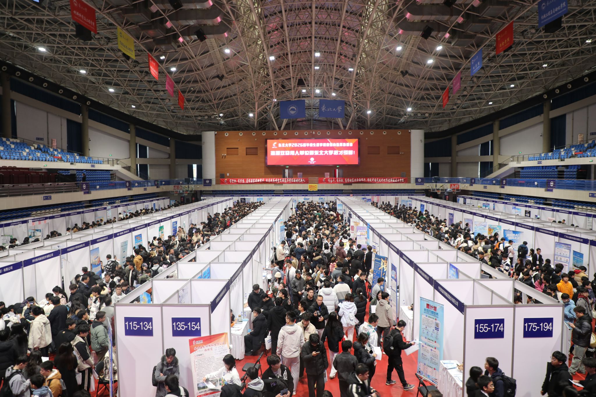 为深入贯彻落实习近平总书记重要回信精神,全面落实中共中央办公厅、国务院办公厅《关于加快构建普通高等学校毕业生高质量就业服务体系的意见》,人力资源和社会保障部、教育部、财政部《关于做好2025年高校毕业生等青年就业工作的通知》和“稳就业”“保就业”的决策部署,紧紧锚定党和国家重大战略需求,畅通教育、科技、人才良性循环,进一步挖岗位、提能力、优服务、强保障,扎实推进我校毕业生就业工作,切实保障2026届毕业生充分、高质量就业,我校于10月29—30日在刘长春体育馆、羽乒馆举办2026届毕业生秋季就业双向选择洽谈会。作为我校毕业生关注度最高的大型招聘活动,本次秋季“双选会”热度持续高涨,吸引了众多重点行业领域的重点单位积极参会,共有来自全国31个省、自治区、直辖市的644家用人单位进校招才引智,为我校毕业生提供优质岗位3.5万个,参会单位数量、质量持续保持高位。