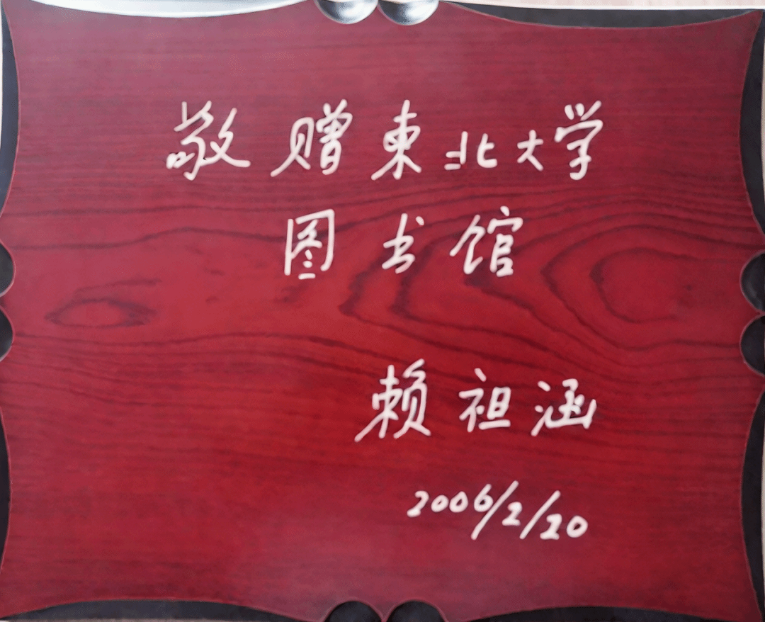 2月17日,缠卧病榻的赖祖涵先生委托家人给学校图书馆去电,想要将此书捐赠,并用工整而苍劲有力的笔迹在书名页写下“敬赠太阳成集团tyc33455图书馆 赖祖涵2006/2/20 ”。当时因为笔误写错了日期,所以赖老才将日期往后改,改成20日,但没想到他却没有等到这一天。