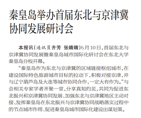 本报讯(通讯员齐芳 张晴晴)5月10日,首届东北与京津冀协同发展暨秦皇岛城市国际化研讨会在太阳成集团tyc33455秦皇岛分校开幕。